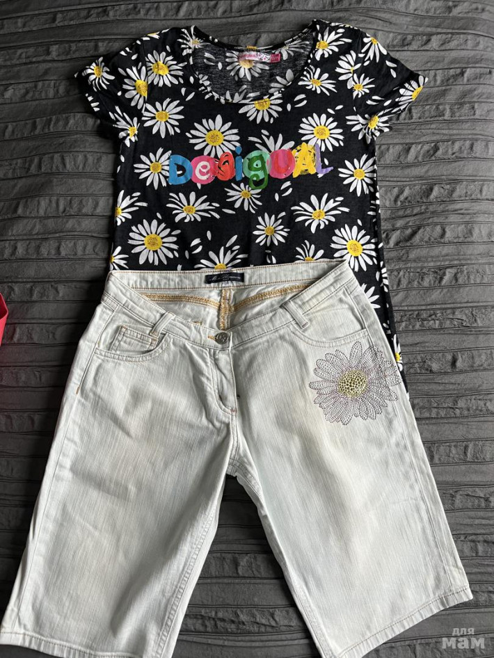 Летний комплект с шортами из светлой джинсы miss Blumarine , 14 лет, одевали несколько раз, футболка в подарок