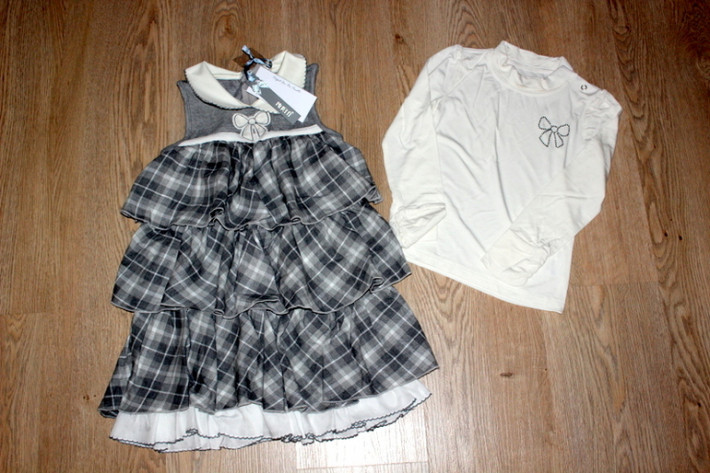 4. Новый комплект, сарафан + водолазка, размер 116, 1000 рублей.