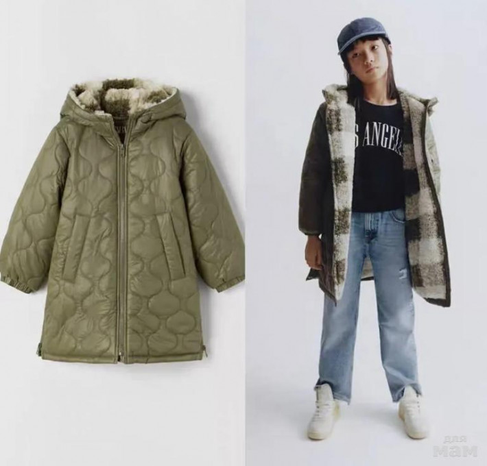 Новое пальто/удлиненная куртка болотного цвета Зара на осень, внутри меховой подклад. Сбоку молнии.