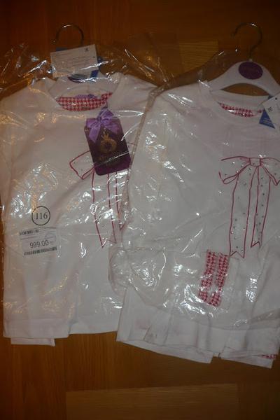 Футболки с длинным рукавом Orsolini - новые, размеры серая 110 см, красная 122 см, белые 116 и 122 см. 500 рублей за одну.