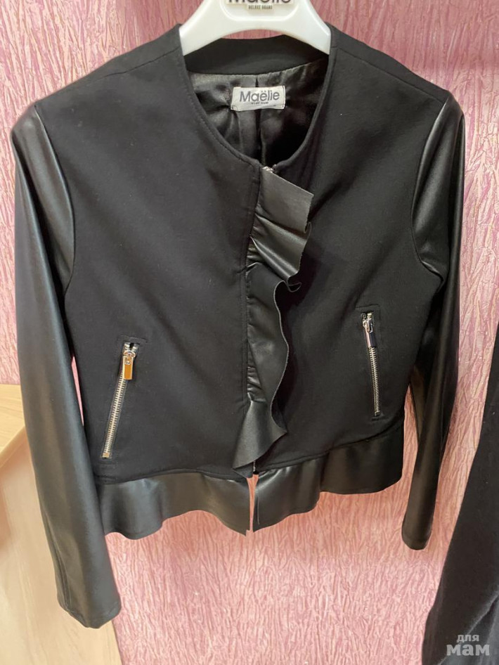 Жакет размер М, подойдёт на рост от 134 до 146 см, б/у не более 10 раз. Замеры: до на рукава 53,5 см, ПОГ 41 см, длина по спинке 48 см. Цена 2300 рублей. Юбочка размер XS, с утяжкой, длина 34 см. Цена 1200 рублей.