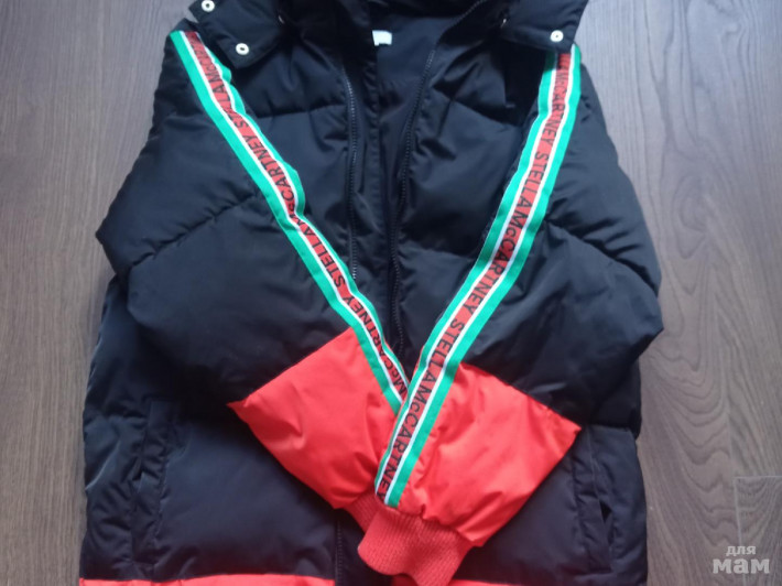 Продам куртку Stella mccartney, р-р 14 (164), идёт в размер, плотно набит пухом, в очень хорошем состоянии. Из минусов немного скатаны манжеты и ободралась краска с кнопки на капюшоне и бегунка. Цена 4