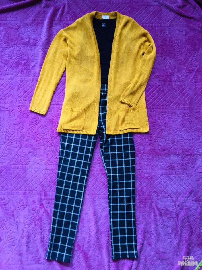 Комплект очень красивый! Брючки ИДо р.16( 170) очень мягкие,как лосины из коллекции этой зимы.Состояние отличное ношены редко. Футболка укороченая Стильняшка р.164.Кардиган акрил,нежный как вискоза.Новый.Весь комплект по цене кардигана))