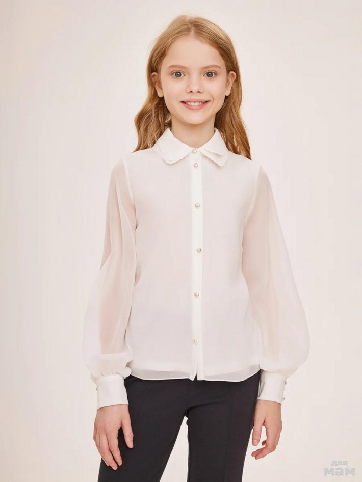 Блузка "Двойной воротничок", молочный, 11 лет (146 см)