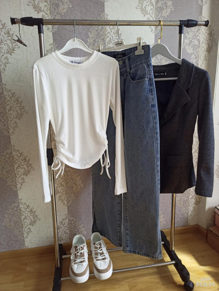 Комплект одежды на худенькую девочку 152-158, джинсы и жакет бу состояние хорошее, Лонг новый