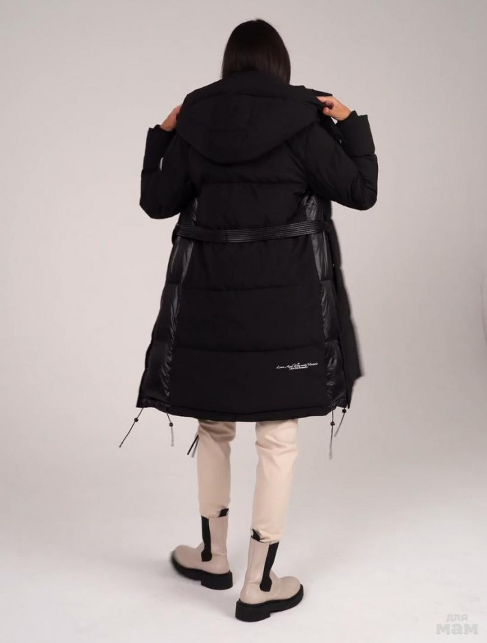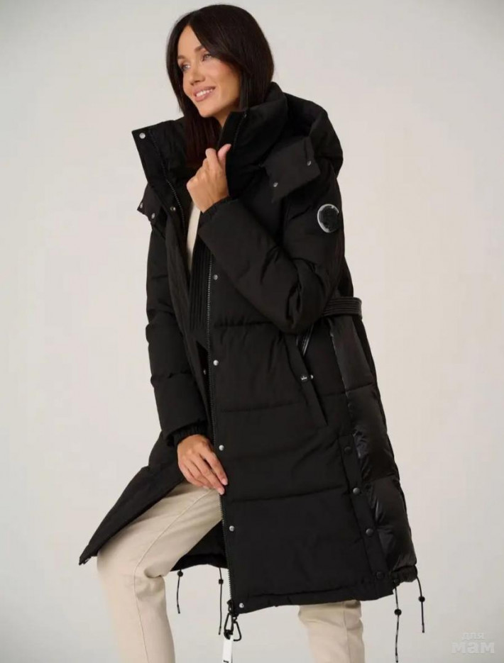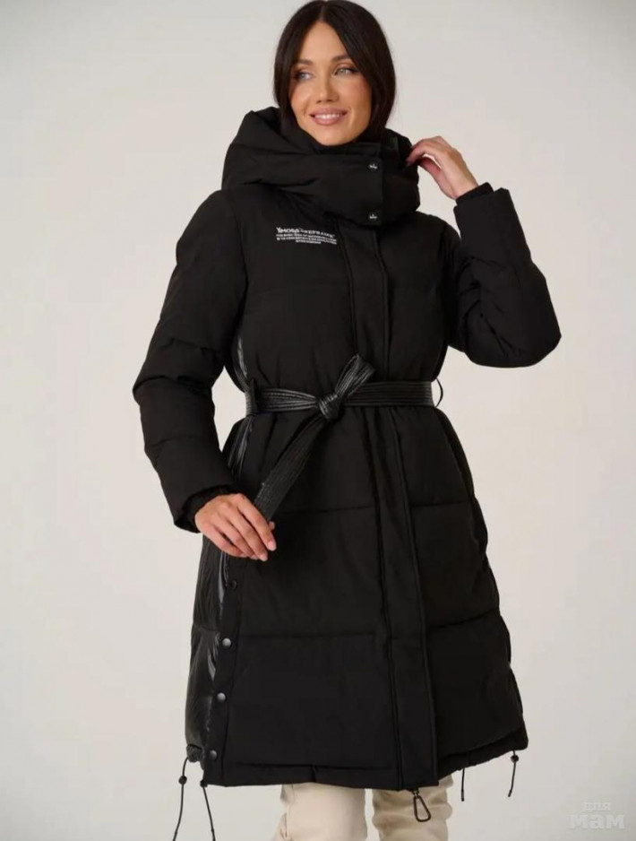 Зимнее пальто силуэта трапеция с поясом в комплекте. Современный утеплитель био-пух делает пальто легким и теплым.