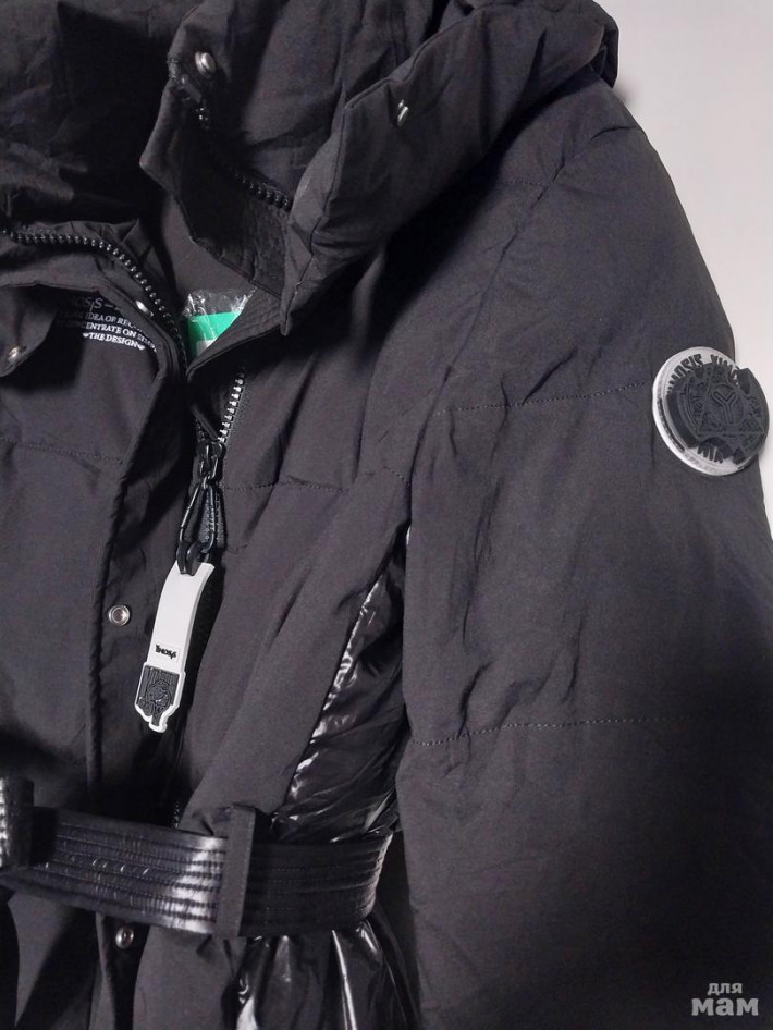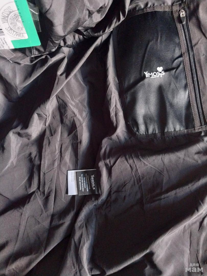 Выполнено из плотной ткани с водоотталкивающей пропиткой. В рукавах манжет - резинка. Внизу по бокам кулиски и расстегивающиеся кнопки. Два внутренних кармана.