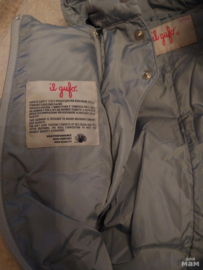 Зимний комбинезон il gufo, невесомый, цвет голубой. Подойдёт и мальчику и девочке. Размер 9 мес.(74 ). Лучше на 68. Состояние хорошее. Небольшая зацепочка на рукаве (последнее фото). Наполнитель 90% пух, 10% перо.