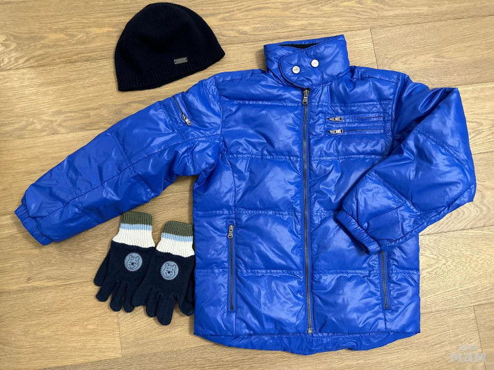Пуховик Ralph Lauren (еврозима) р.134, шапка Borelli, перчатки Prenatal состояние очень хорошее