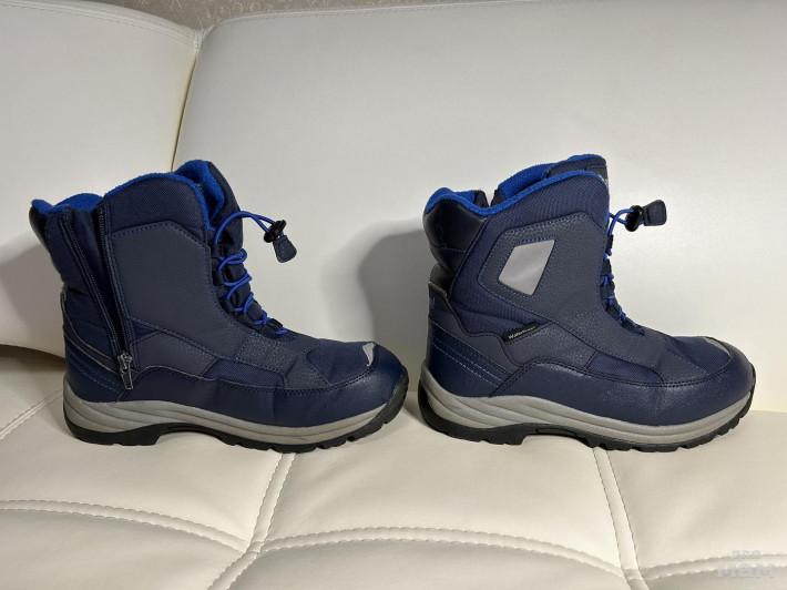 Сапоги теплые и в хорошем состоянии, без дыр и потертостей, молнии работают, резинка-шнуровка не вытянута. Подошва не скользкая. Цвет стелек на фото получается темнее, чем на самом деле - стельки чистые и постиранные. Модель универсальная, подойдет и мальчику и девочке.