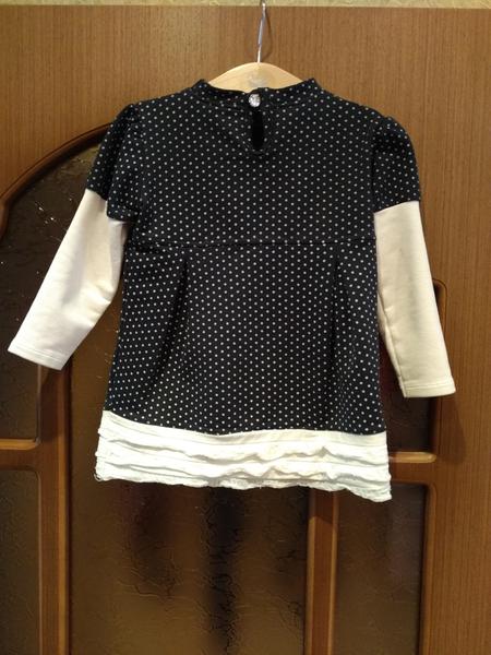 3. Простое, но в тоже время милое платье на любой сезон. Сидит отлично при росте 90-92, можно носить 86-94. Дальше просто коротковато. За счет складочек смотрится баллончиком. Цена 450р.