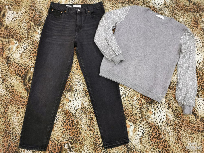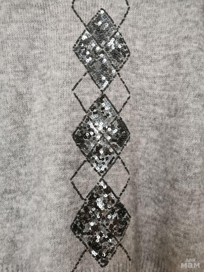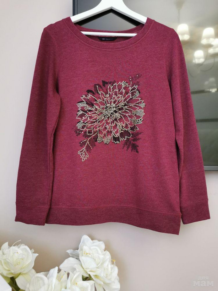 лонг M&S, цветок декорирован клепками, размер 12 европейский (замеры: плечи - 41 см, подмышки - 51 см, длина рукава от плеча - 62 см, длина изделия - 65 см), 500 руб.