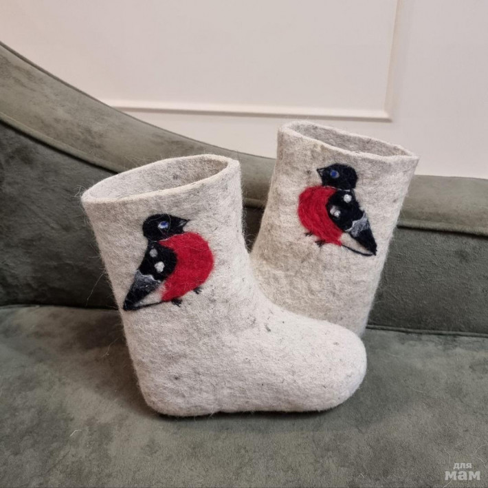 12. Валенки с вышивкой Снегири (по стельке 16 см) - 1300 р.
