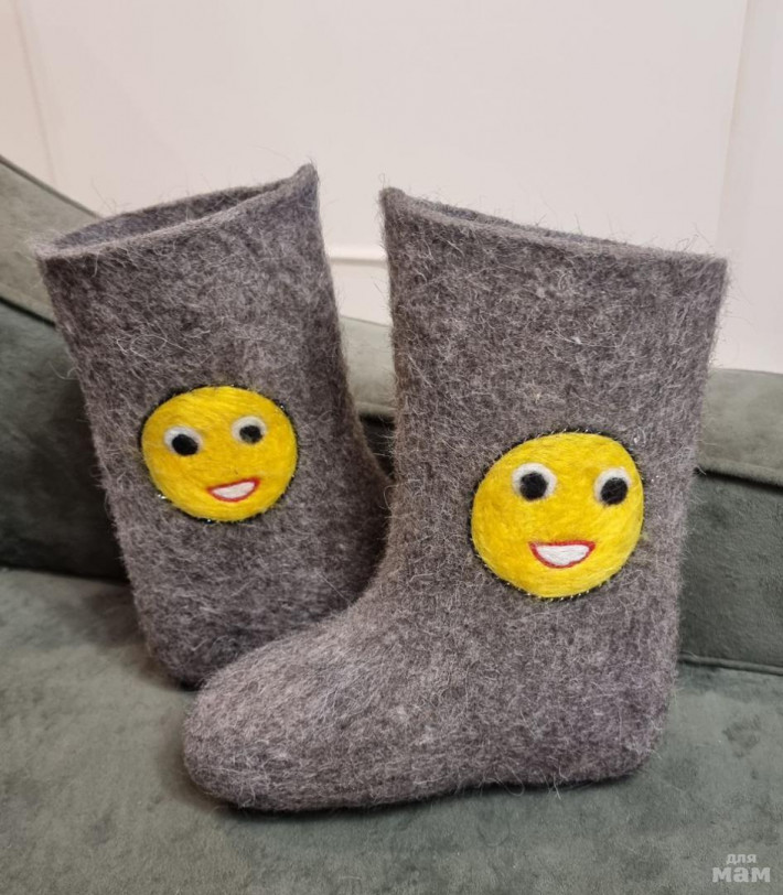 26. Валенки серые с вышивкой Солнышко (по стельке 18 см) - 1300 р.
