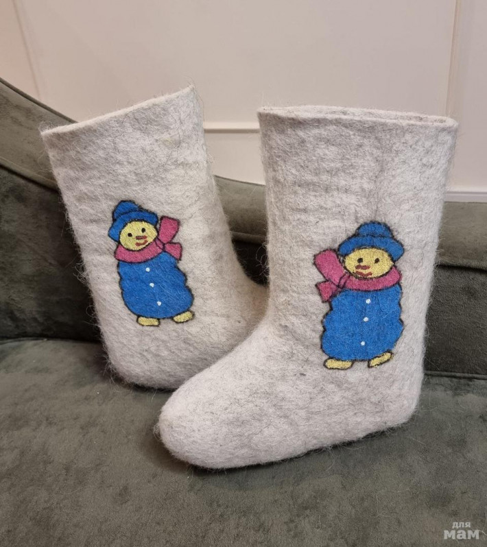 28. Валенки двухцветные с вышивкой Чебурашка (по стельке 18 см) - 1300 р.