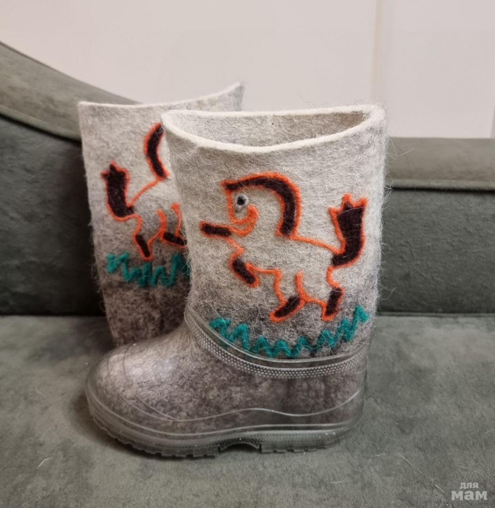 1. Валенки с вышивкой (черепашка), размер 15 серые (по стельке 12,5см) - 1200 р.