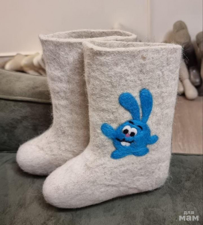 17. Валенки белые с вышивкой Смешарики - 1300 р.