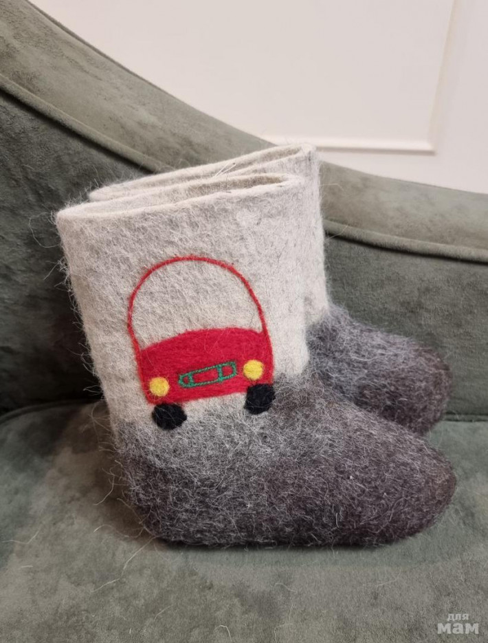 4. Валенки двухцветные с вышивкой Паровозик (по стельке 13,8) - 1300 р.