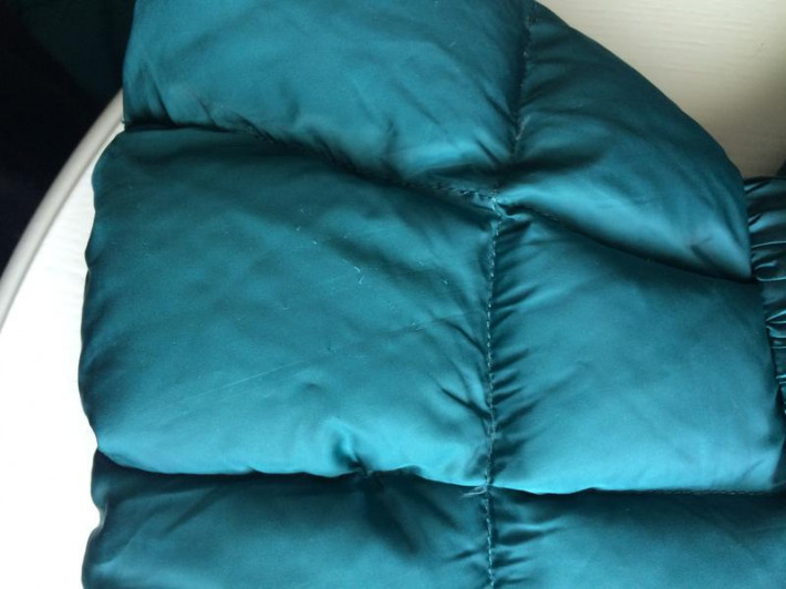 Костюм шикарный, тёплый, красивый, нереально красивый цвет... Но в связи с этим и самый любимый))) Гоген очень активно. Колени, попа белесые, на курточке сзади зацепки от карзины в супермаркете. Ну и цена соответствующая. Для сада и двора самое оно. Очень тёплый.