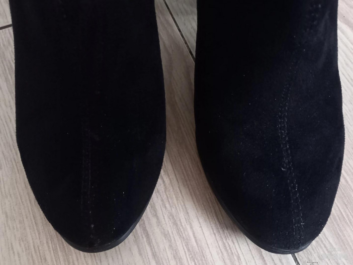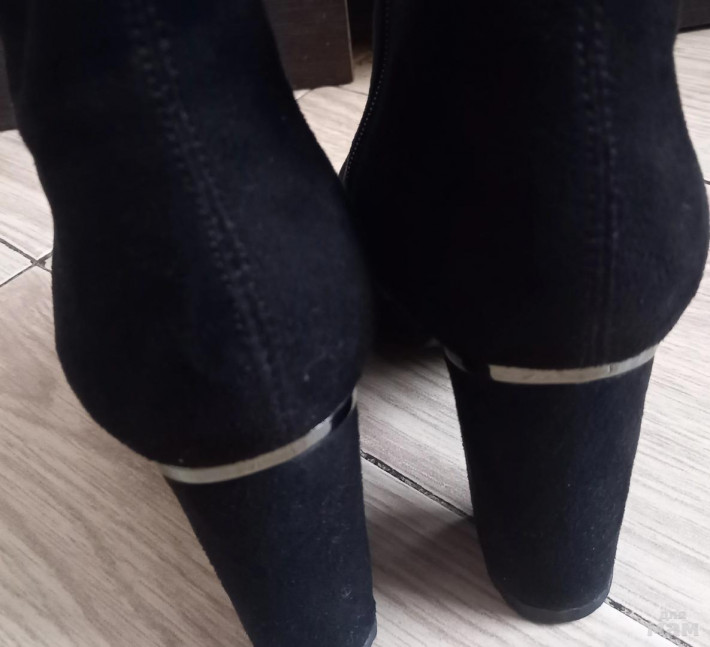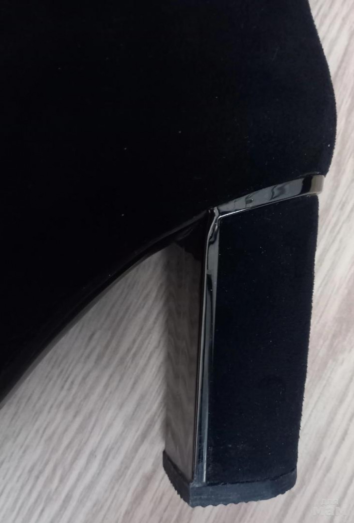 Стильные демисезонные ботильоны BONA MENTE р.37 (24 см). Из мягкой замши чёрного цвета. Внутри на ворсине. Устойчивый каблук 9 см с металлической окантовкой. Застёжка молния. Украшены стразами и металлическим декором на щиколотке. Очень удобная колодка. Выглядят очень изящно на ножке. Куплены за 4000. Надеть 2 раза.