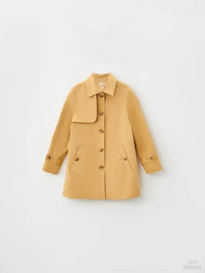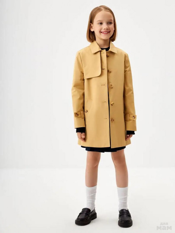 Классический плащ с отлетной кокеткой для девочки из школьной коллекции sela. Он выполнен из приятной на ощупь, гладкой ткани с водоотталкивающей пропиткой, что делает этот плащ идеальным выбором для осенней погоды. Он защитит от дождя и ветра, а также сохранит тепло в прохладные дни. Актуальный прямой крой позволяет сочетать модель с любым школьным комплектом, сохраняя при этом комфорт и свободу движения. Классический отложной воротник и длинные рукава защитят от холода и предотвратят поддувание. Декоративные хлястики на манжетах добавляют тренчу изысканности и элегантности. Функциональные прорезные карманы по бокам на пуговицах позволяют хранить необходимые мелочи и аксессуары всегда под рукой. Застежка на роговые пуговицы и шлица сзади делают этот плащ еще более функциональным и удобным в использовании. Мягкая приятная к телу подкладка увеличит прочность и долговечность изделия, а также обеспечит дополнительный комфорт. Этот плащ можно использовать как в повседневных образах, так и для разнообразия школьной формы. Он идеально подходит для создания стильного и элегантного образа, который подчеркнет индивидуальность и хороший вкус девочки. Рекомендованный температурный режим +20/+10 градусов, что делает его идеальным выбором для осенней и весенней погоды. НОВЫЙ С БИРКАМИ. Практичный цвет, удобная и незаменимая вещь!!! размер 158.