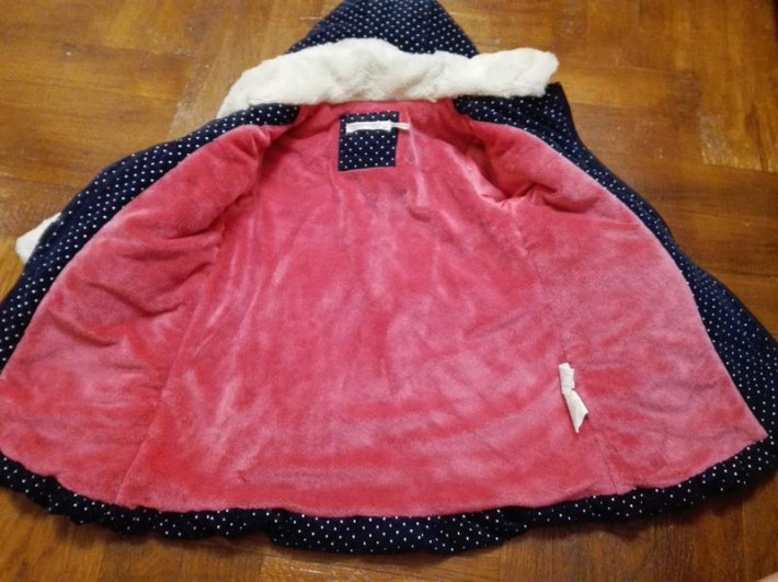 б\у, мне кажется есть небольшой недочет - чуть скатан мех на воротнике, но честно, если не приглядываться, то и не знаешь, все же это искусственный мех