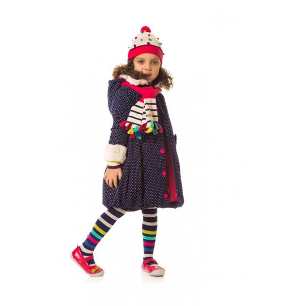 пальто из синего вельвета в мельчайший горох на молнии с бутафорскими пуговицами.