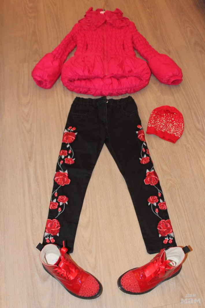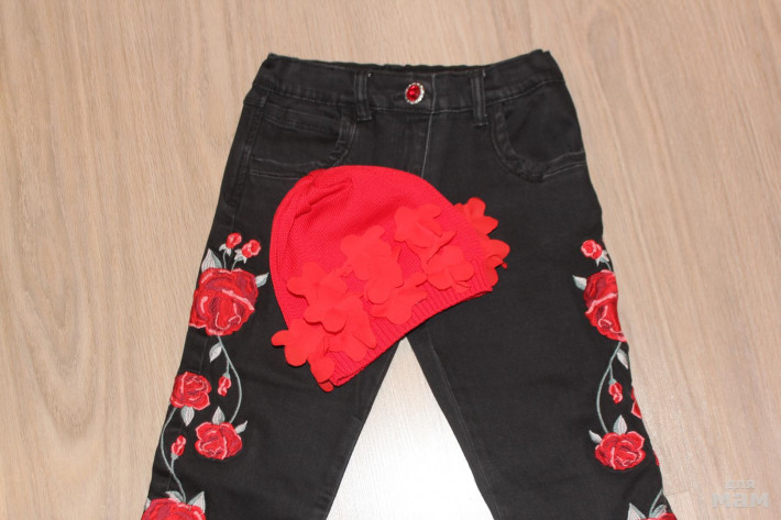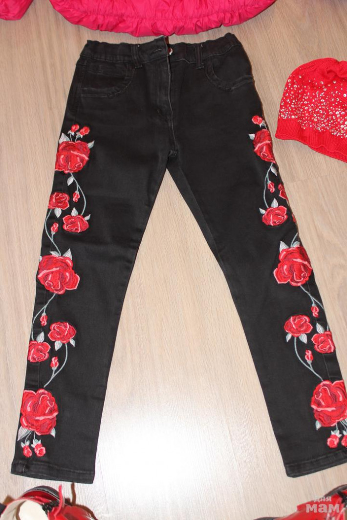 Новые джинсы Моннализа с вышивкой красные розы, очень стильные, р. 8 лет, мы переросли. 3500 р. Покупала дороже. В подарок могу отдать красную шапочку Катя на последнем фото с лепестками.