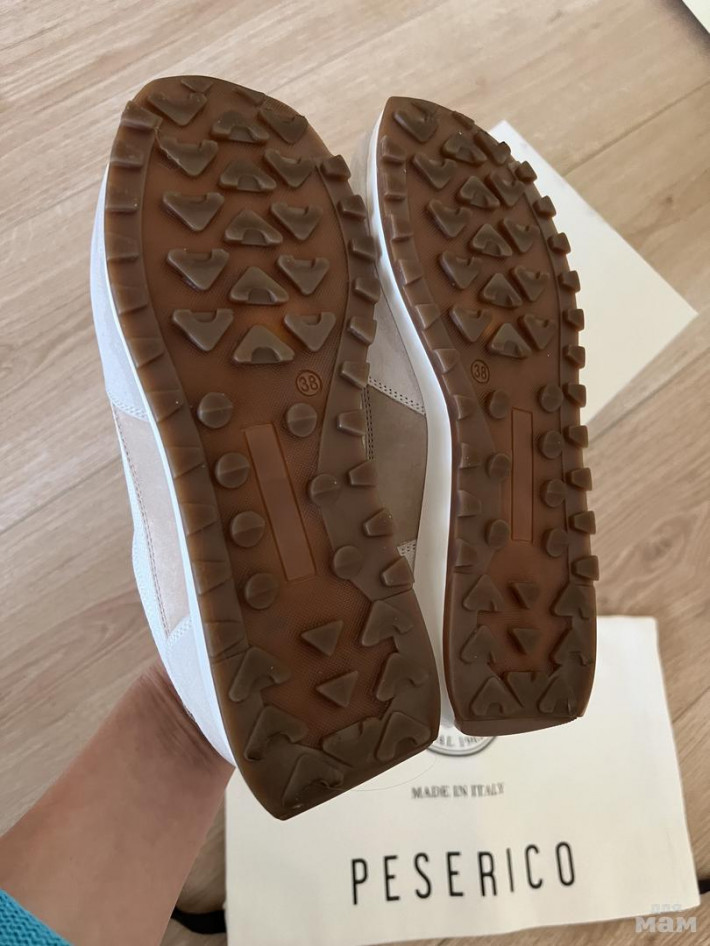 Кроссовки Peserico р38 очень легкие и мягкие👍🏻 Надела до машины один раз. Без следов носки❗️Мне на узкую ногу 24,5см велики( Подойдут на более широкую ногу или стопу 25см 22500₽