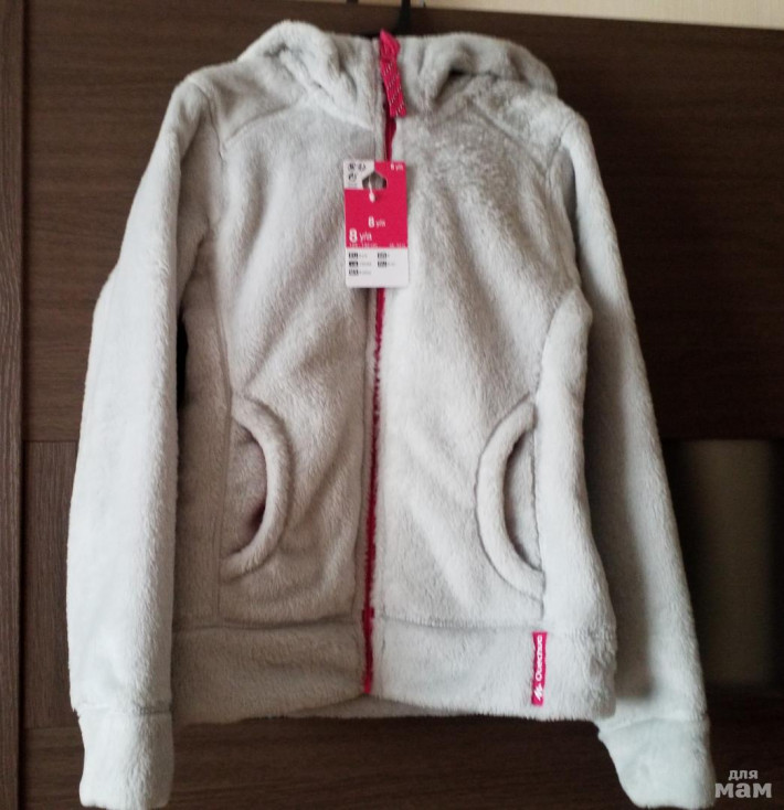 Новая толстовка на молнии французского бренда Decathlon. С этикеткой. Размер 8 лет, 125-132 см. На молнии, капюшон и 2 кармана. Теплая пушистая, флис. Защита подбородка на молнии , манжеты на руковах.
