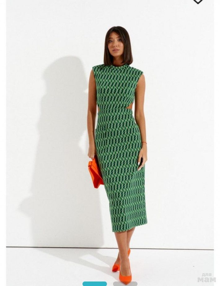 Трикотажное платье с абстрактным ярким принтом прилегающего силуэта с декоративными вырезами в области талии. Яркий насыщенный принт , смелый крой платья сделают Ваш образ незабываемым.