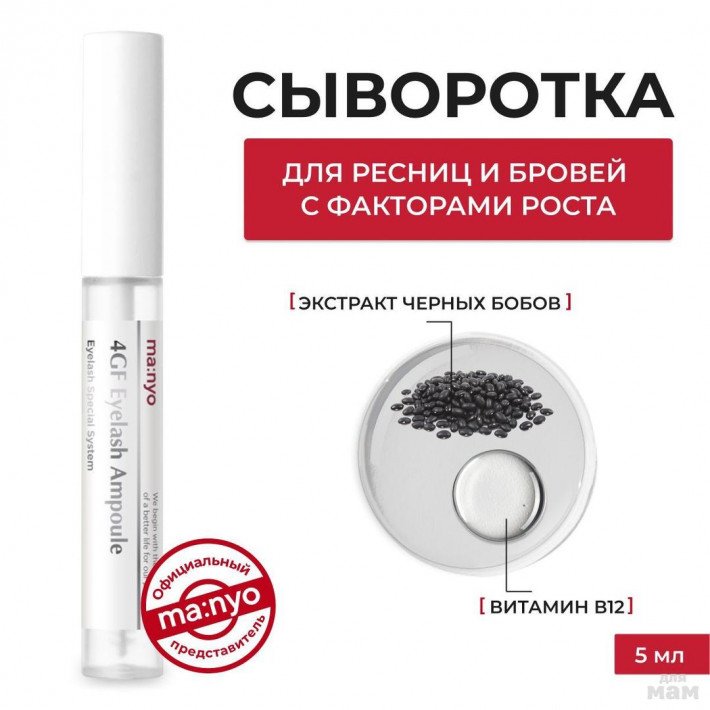 Ампульная сыворотка Manyo 4GF Eyelash Ampoule для сильных и крепких ресничек. Сыворотка восстанавливает и решает проблему ломкости и слабости ресниц из-за частого окрашивания, укрепляет реснички от корней до самых кончиков.