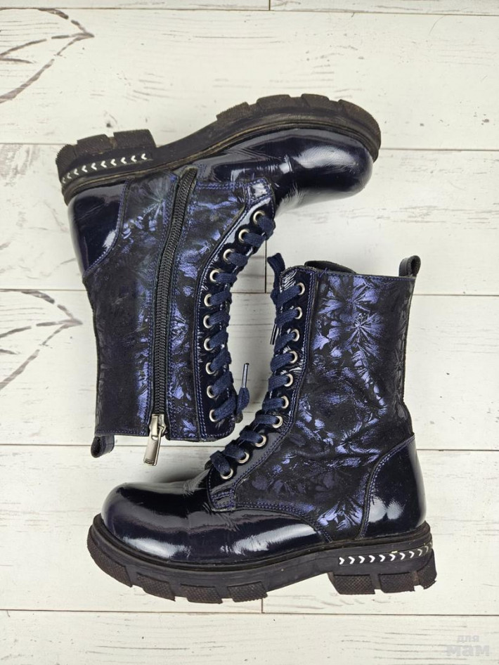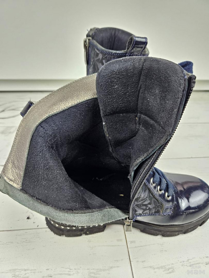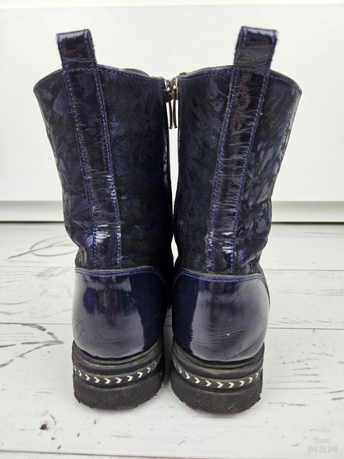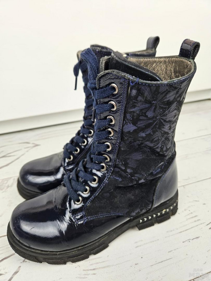 Сапожки кожа/лак на флисе для девочки. В прекрасном состоянии (есть слабые царапинки на мысах). Размер 31, стелька 20,7 см.