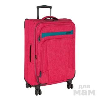 Стильный чемодан модной расцветки имеет в наличии две ручки для переноски сбоку и сверху чемодана, а также выдвижную ручку, максимальная высота которой составляет 105 см. Кодовый замок в комплект не входит.