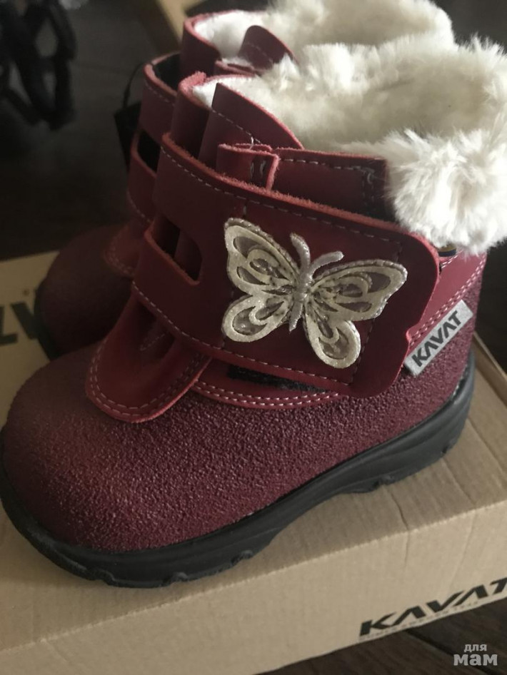 Идеальная зимняя обувь, не промокает и держит ножки в тепле. Примерно 14 см