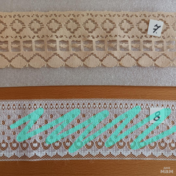 - 2 фото - 7 кружево бежевое ширина 5,5см длина 3,45м - цена 150р. за моток 8 кружево - ПРОДАНО