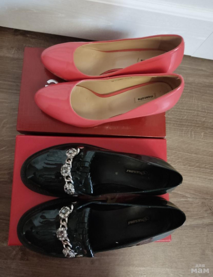 1. Лодочки Mascotte Маскотт, шикарные, натуральная лакированная кожа, цвет коралловый. По стельке 25,8 см. Б/у в офисе, состояние отличное. Хорошо сядут на узкую и среднюю ножку, на широкую будут маловаты. Есть новые запасные набойки.