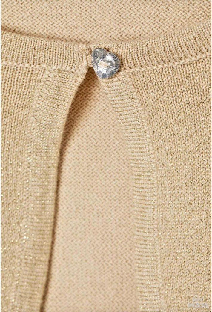 Блестящее золотое болеро H&M (Швеция) р.110-116. Из 100% хлопка с добавлением металлизированных нитей. Застежка на одну пуговку-стразу.