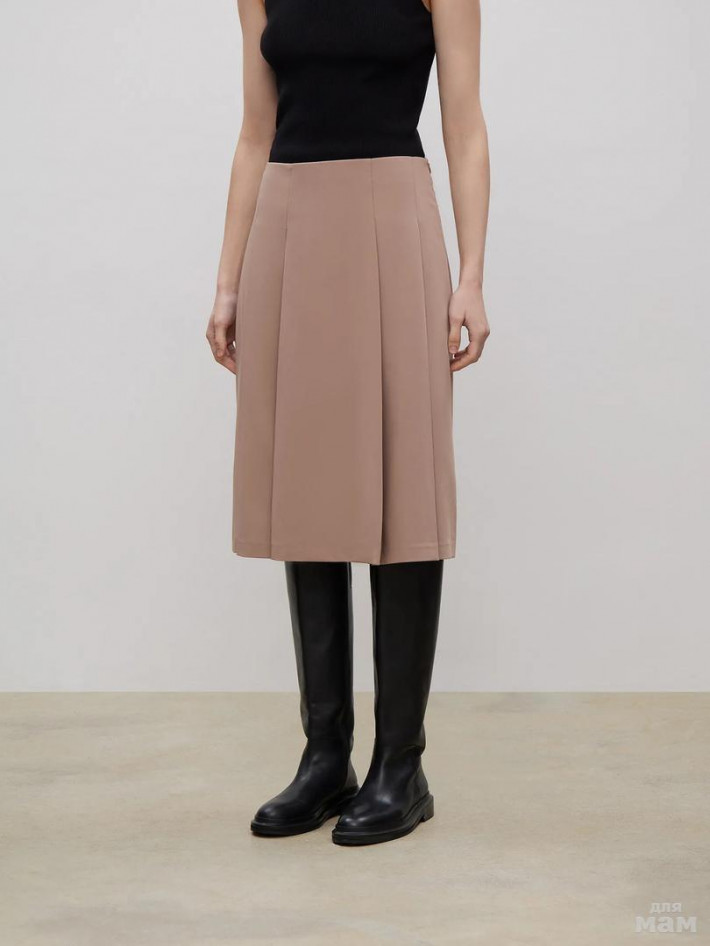 Элегантная юбка в приятном бежевом цвете. Изюминка модели — красивые складки от бедра. Такая юбка прекрасно смотрится как с изящными блузками нежных фактур, так и классическими офисными рубашками или базовым трикотажем. Модель А-силуэта средней посадки имеет оптимальную длину ниже колена. Сзади по бокам располагаются аккуратные вертикальные вытачки. Изделие застёгивается на молнию сбоку. Выполнено из материала с высоким содержанием вискозы, на подкладке.