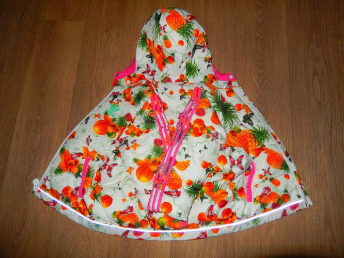 капюшон отстегивается,есть светоотражатели,рукава на манжетиках.