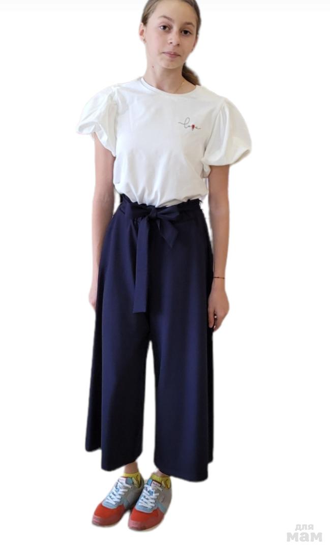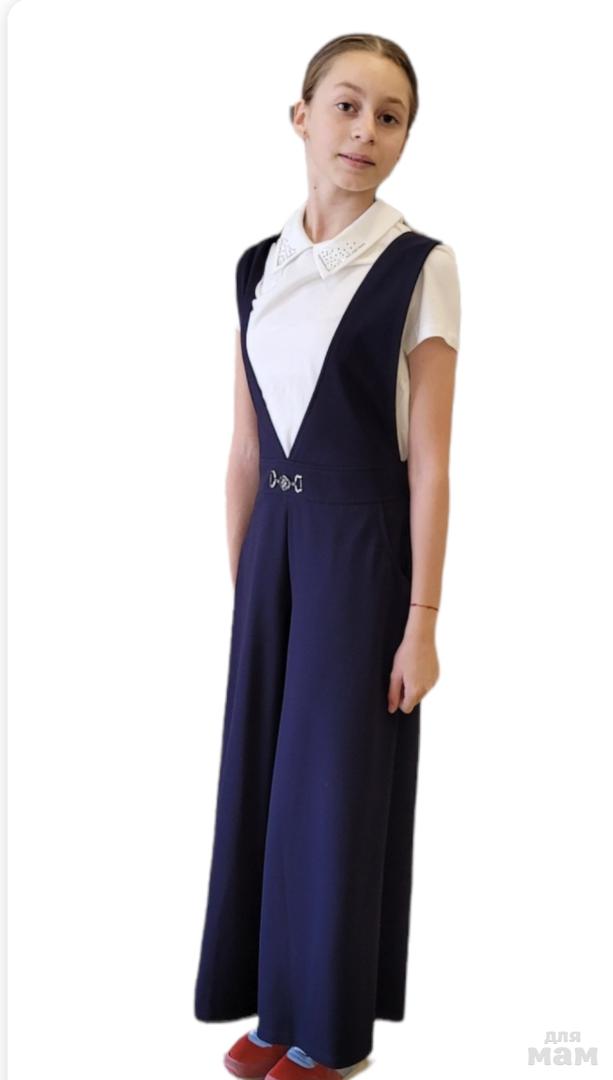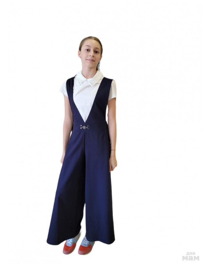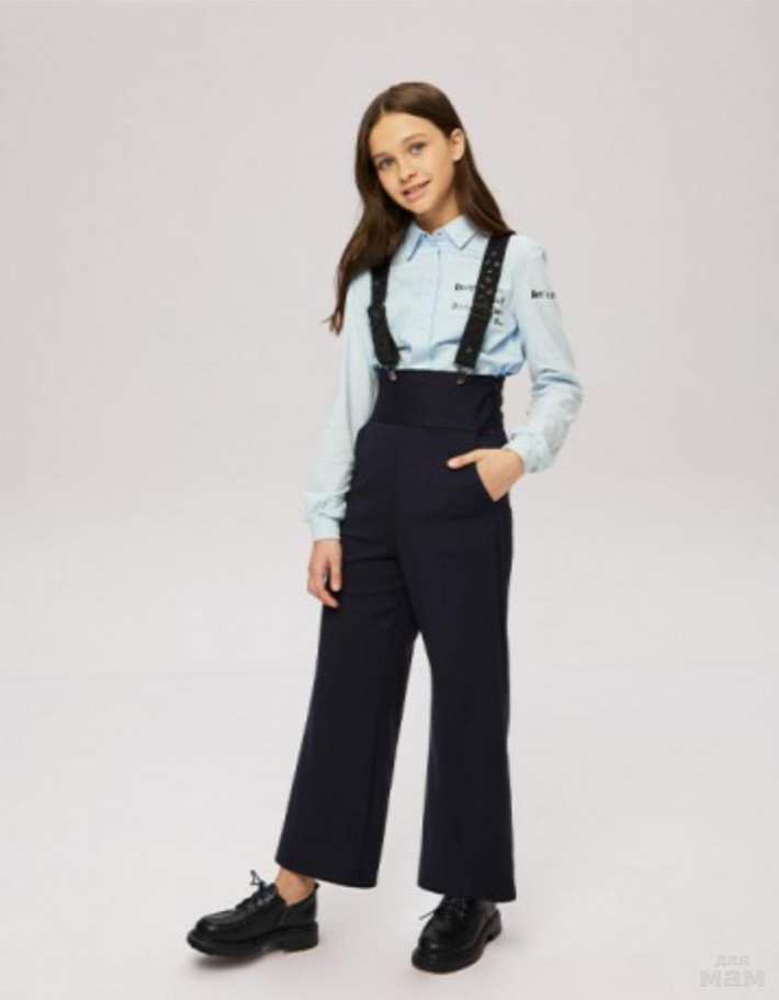 Брюки-кюлоты с высокой посадкой на брендированных подтяжках.Очень стильно смотрятся, идеально сидят!Цвет темно-синий.Размеры в наличии 134,140,146,152,158,164..Цена 2990 руб