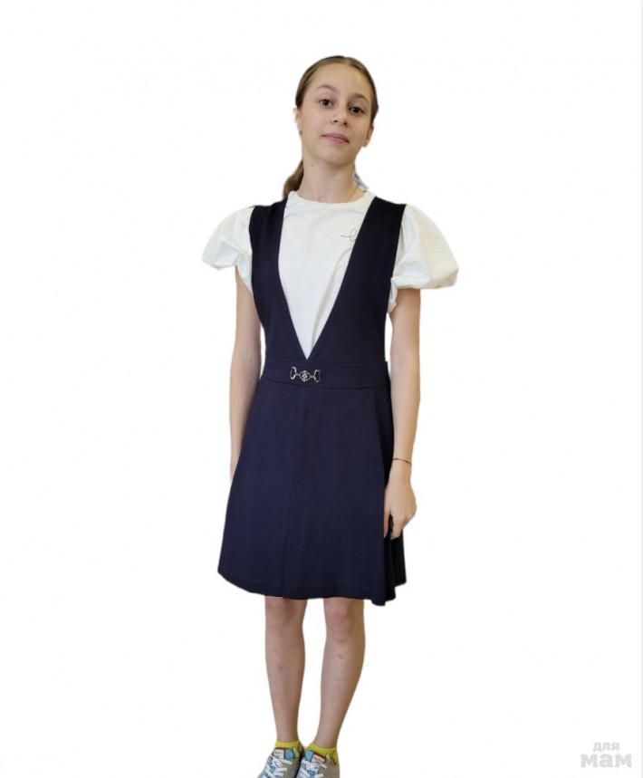 Красивый сарафан оригинального кроя. Цвет синий.Размеры в наличии 134,140,146,152,158..Цена 2190