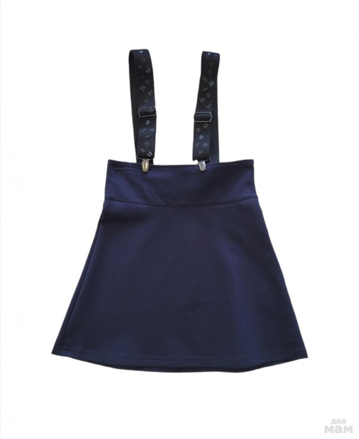 Супер-стильная трикотажная юбка с высокой талией на брендированных подтяжках(сьемные)Идеально на стройных девочек.
