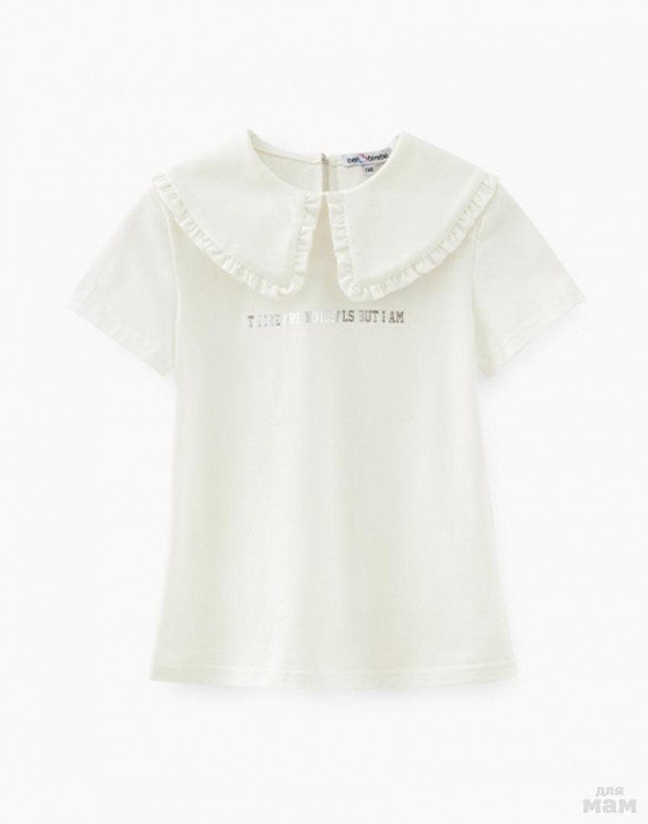 Черная футболка для девочки. Комфортная модель с трендовым отложным воротником.