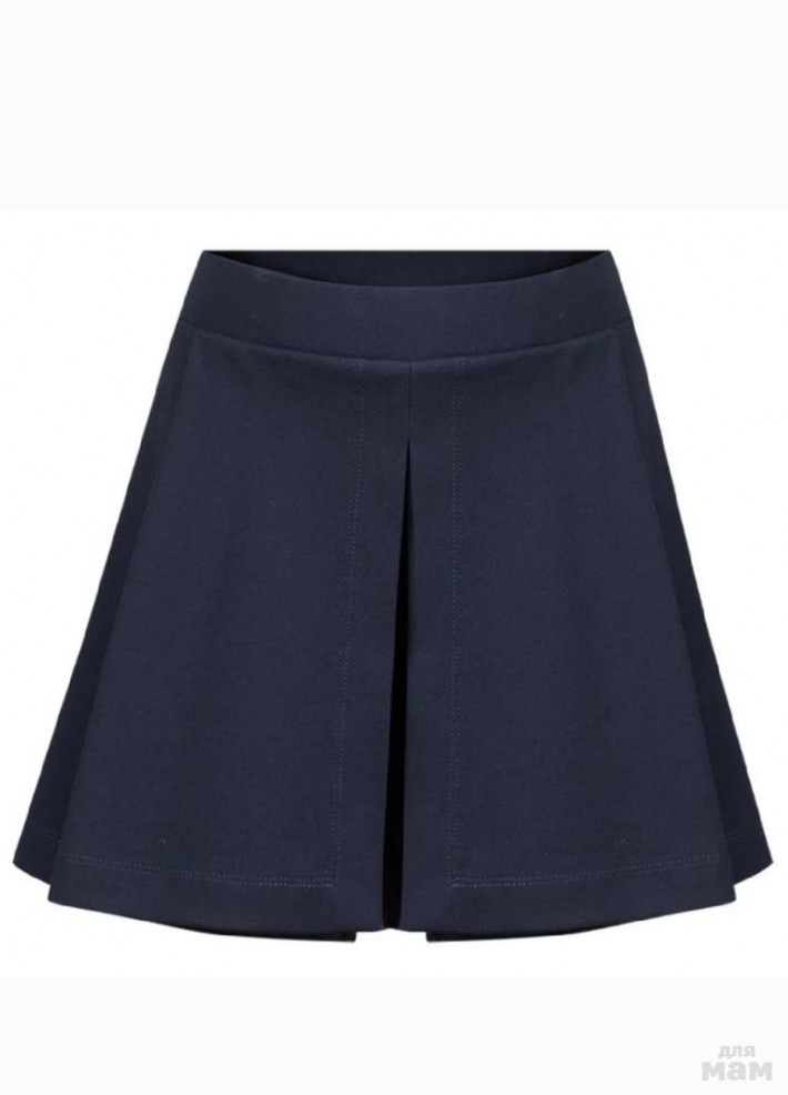 Хит школьной коллекции - темно-синие шорты-бермуды для девочки. Стильная модель на эластичном поясе с наклонными боковыми карманами. Декорированы эластичной лентой с тематическим принтом.