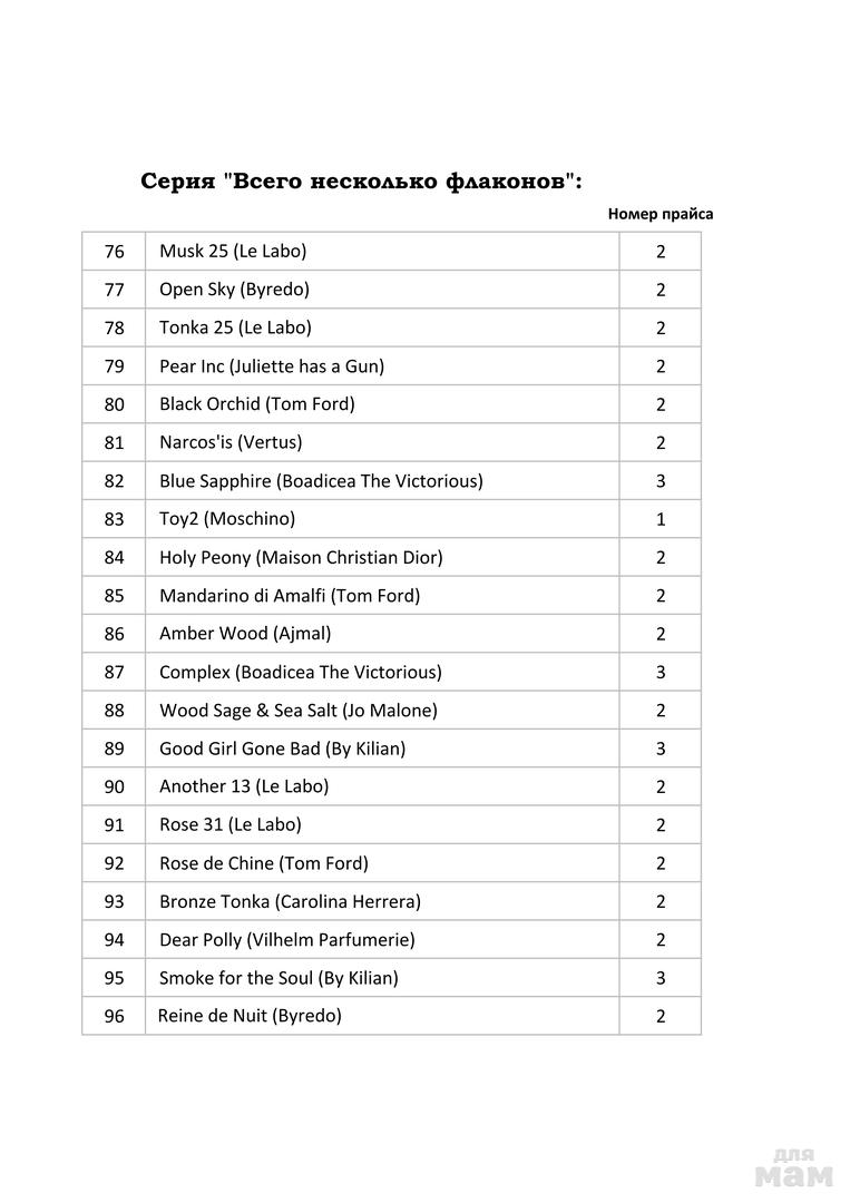 Это объявление для тех, кто любит и ищет реально качественный парфюм. Предлагаю КОНЦЕНТРАТЫ ароматов в объёмах 2, 6, 14 и 17мл (флаконы показаны на фото). Концентрат – это не масляные духи, это сама композиция, парфюм 100% (6мл – это аналог 50мл парф.воды). Качество концентратов очень высокое, поставки из Франции. Концентраты звучат красивее, насыщеннее, дольше, чем их спиртовые аналоги. В приложении выложен перечень ароматов с ценами на сегодняшний день. Цена аромата определяется но номеру прайса – от 1 до 4: