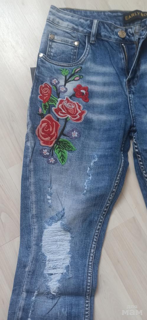 Джинсы красивые стрейч, вышивка, рванка+ремешок -26р. на 42-44.