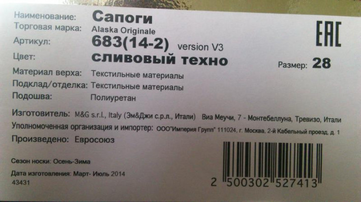 Аляска Оригинал р.28 (18,8см по стельке). 2100р, почта 300-350р.