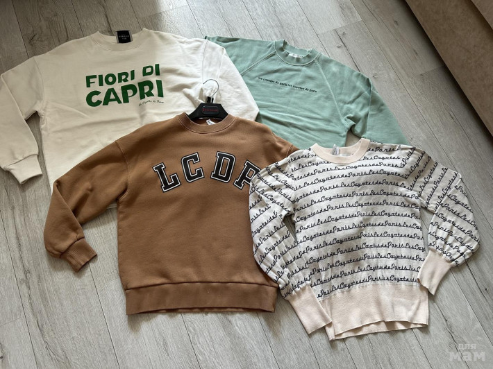 ✅4. Очень красивый салатовый свишот разм- 14 но маломерит на 12 ( мягчайший и шелковистый ) . ❗️но есть один нюанс на левом плече см фото ( случайно построили точку ручкой и в химчистке неудачно пытались убрать и немного сошла краска ) . В цене учла , но он очень классный 👍🏼. ☑️ЦЕНА 2500 руб ( хотя стоил он 15) .