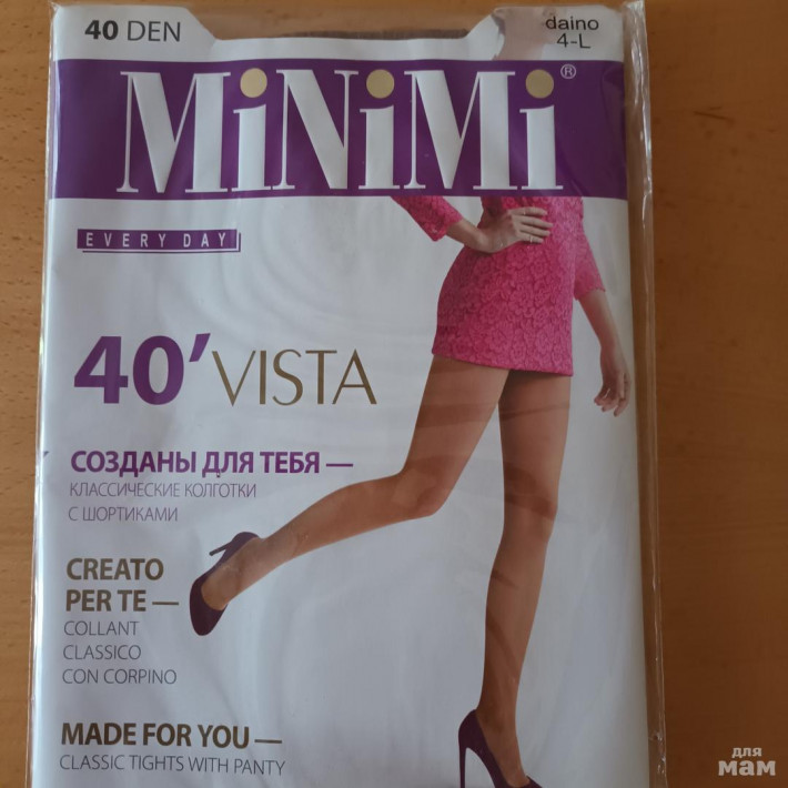 Прозрачные матовые колготки Minimi Vista 40 ден, с широким комфортным поясом, усиленными шортиками и укрепленным мыском. Размер 4 daino 1 шт. и размер 5 daino 1 шт.